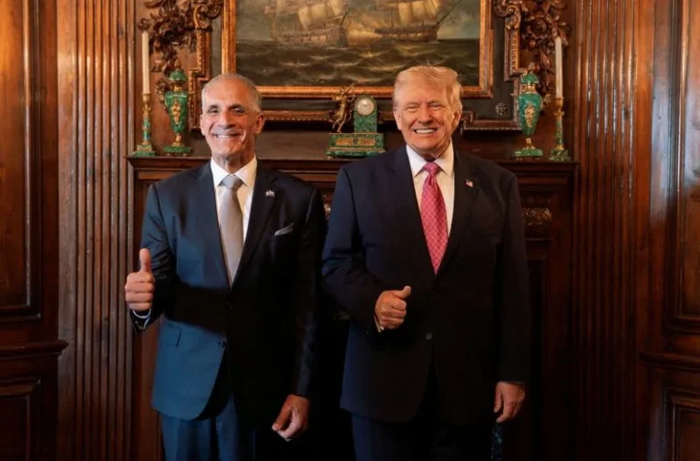 El presidente Donald Trump, posa con e Nasry Asfura, en la residencia de Trump en Mar-a-Lago, en Palm Beach, Florida, EE. UU. A pesar del triunfalismo con el que se presentó la reunión de Nasry Asf…